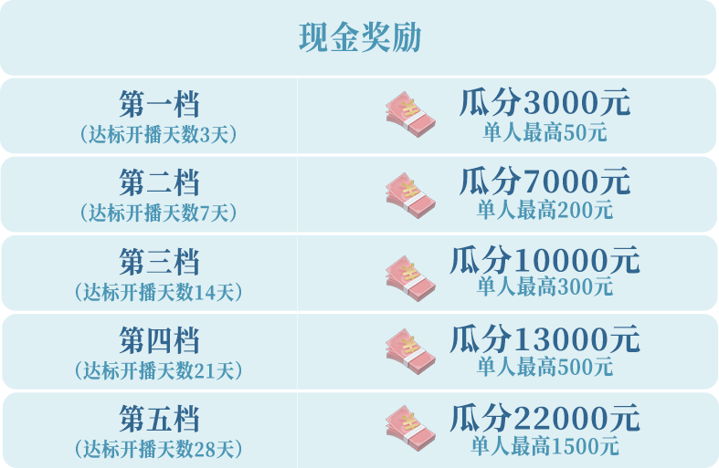 5、活动奖励仅限主播本人领取,不得进行转让、售卖等操作。若发现违规转让,取消双方奖励资格,并追回已发放奖励