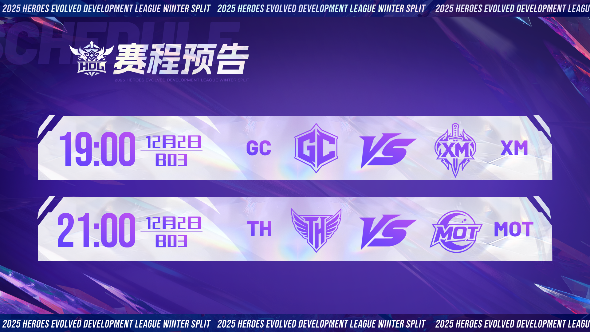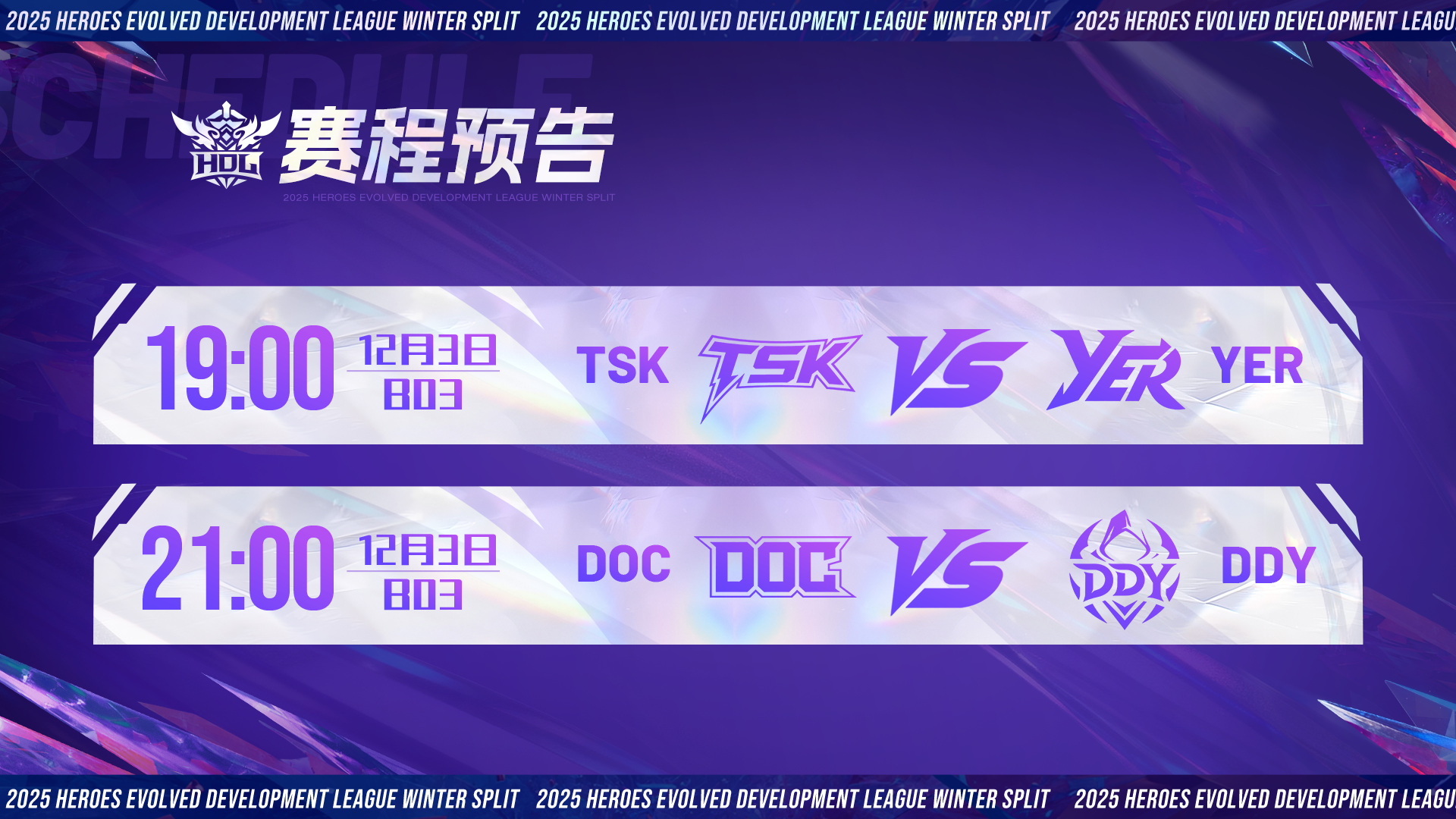 HDL发展联赛 | 淘汰赛12月1日正式打响,十六支战队早已蓄势待发! 12月1日19:00 2025HDL发展联赛冬季赛将迎来淘汰赛阶段! 经过为期一个月的海选角逐 共有十六支战队脱颖而出 这些劲旅之中谁又能突出重围 问鼎最后的总冠军? 参赛战队 赛程预告